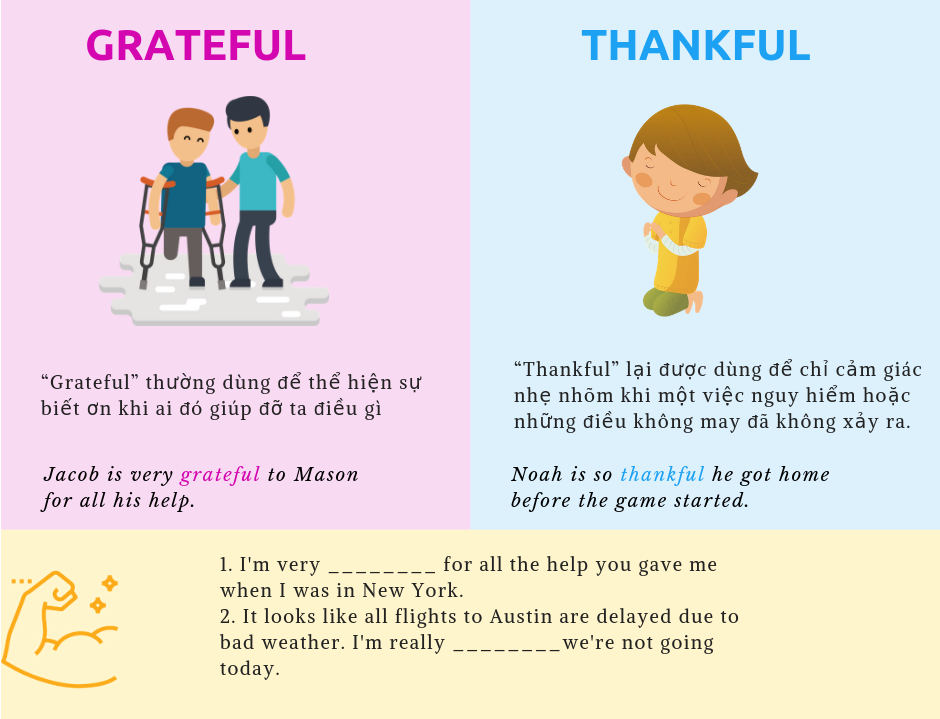 >>> Có thể bạn quan tâm: Cách phân biệt Grateful và Thankful trong tiếng Anh dễ dàng nhất
