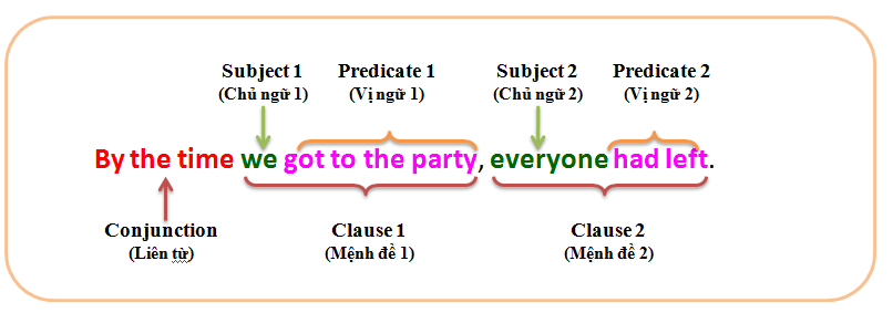 - Clause 1 chứa by the time được gọi là mệnh đề by the time.