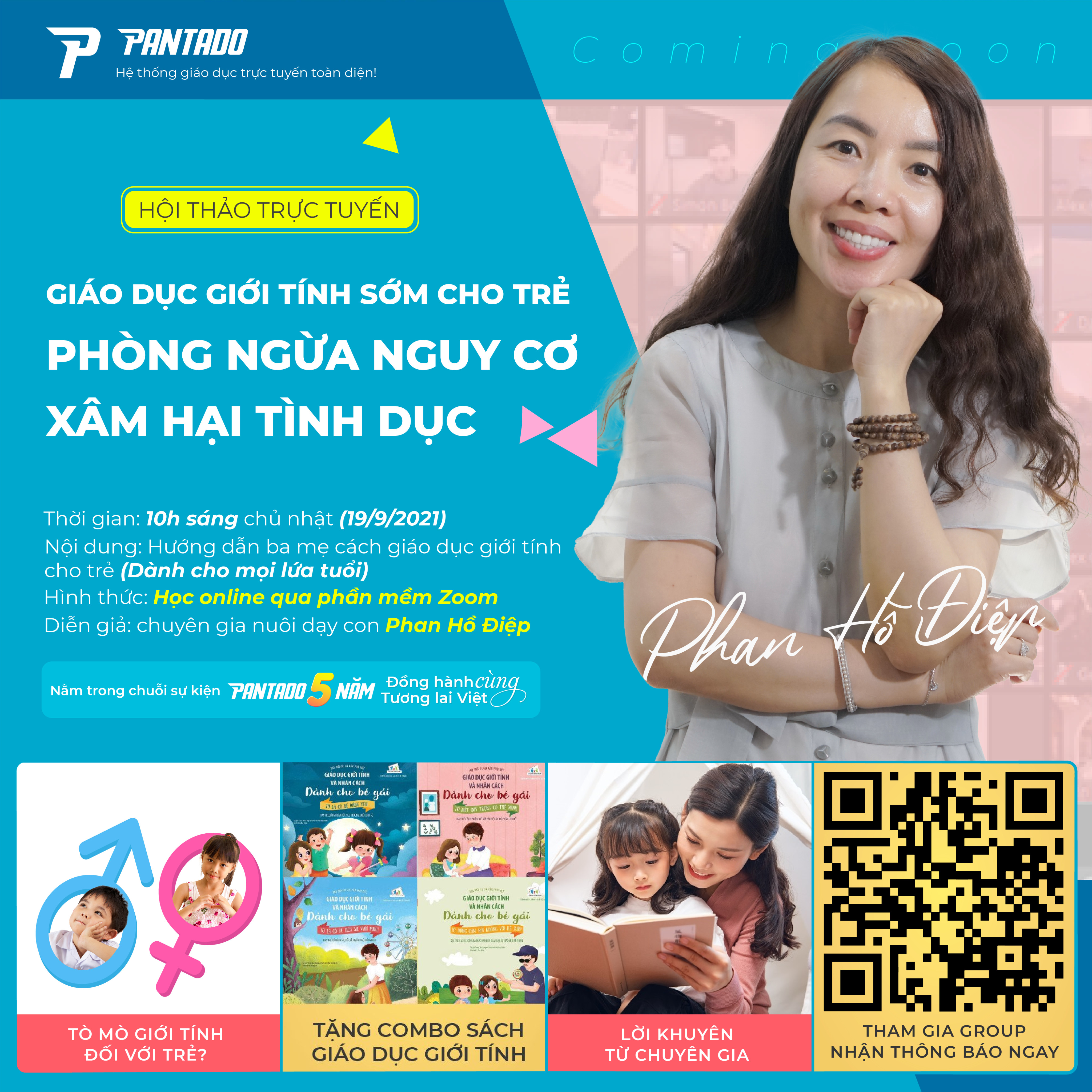 Điều quan trọng là làm thế nào để ba mẹ trang bị cho con về những kiến thức giáo dục giới tính cho trẻ. Hiểu được những băn khoăn này, Pantado xin hân hạnh thông báo về việc tổ chức Hội thảo “Giáo dục giới tính sớm cho trẻ - Phòng ngừa nguy cơ xâm hại tình dục” với diễn giả là chị Phan Hồ Điệp - chuyên gia nuôi dạy con đã rất quen thuộc với bậc làm cha mẹ chúng ta.